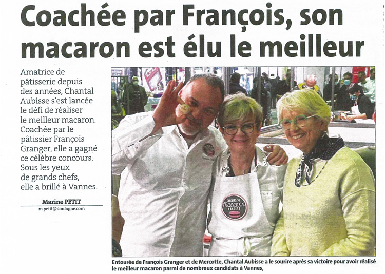 La vannetaise Nathalie Pataut Championne du Monde 2017 du macaron Amateur sacrée le 13 Mai à Bergerac pour son macaron Fraise, Kalamansi, poivre de Timut; avec son coach Alain Chartier #Vannes ![]()
